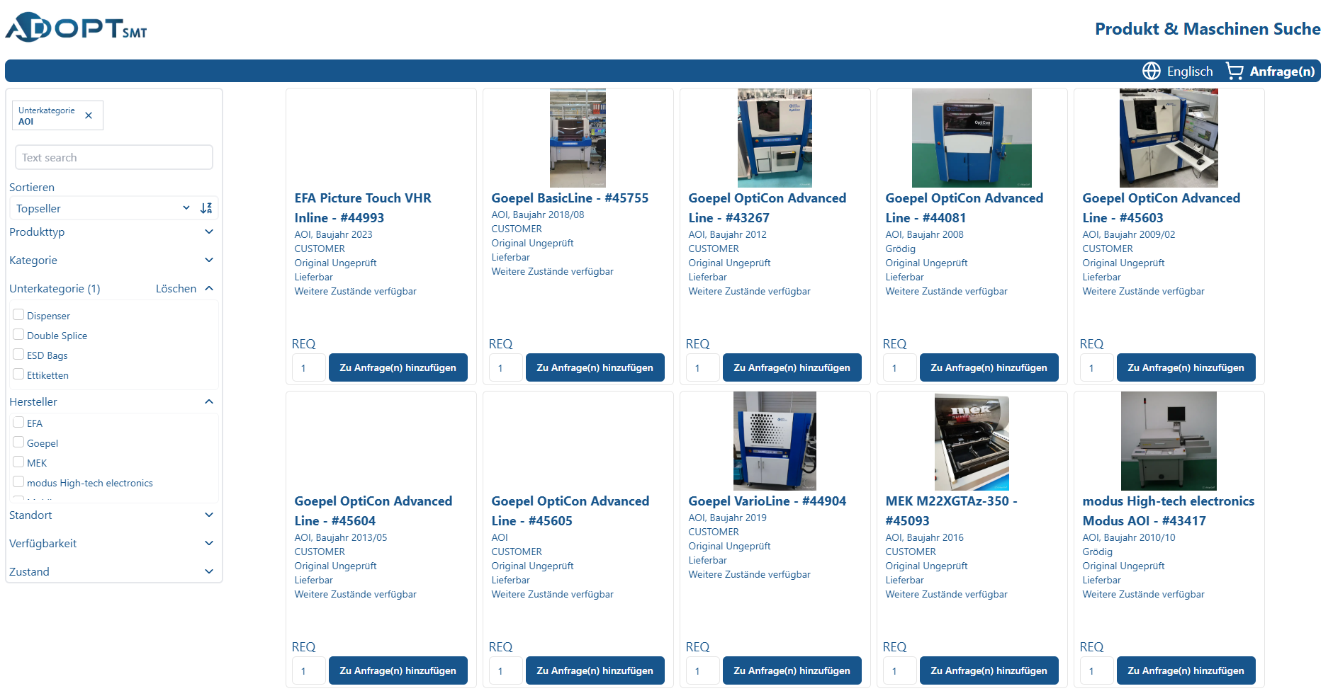 Web-Shop mit großem Produktkatalog und Bestell-Anfragen
